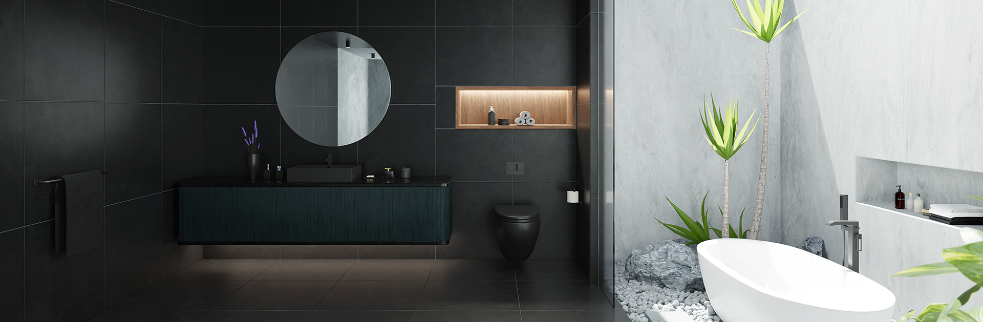 가장 잘 어울리는 타일과 도기, 액세서리 조합으로