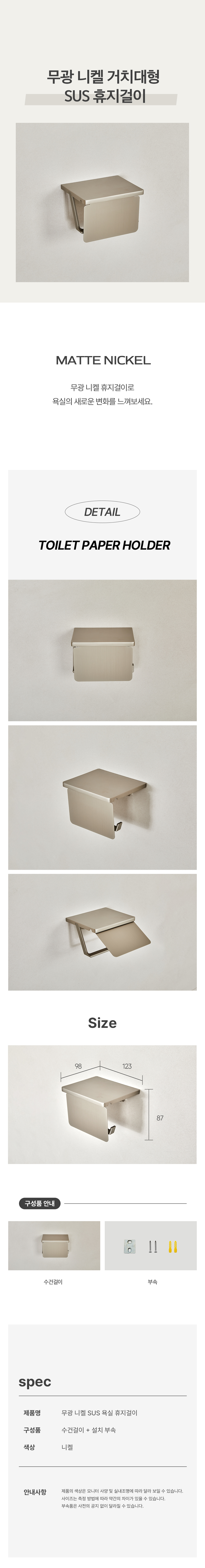 예가 무광 니켈 sus 욕실 휴지걸이