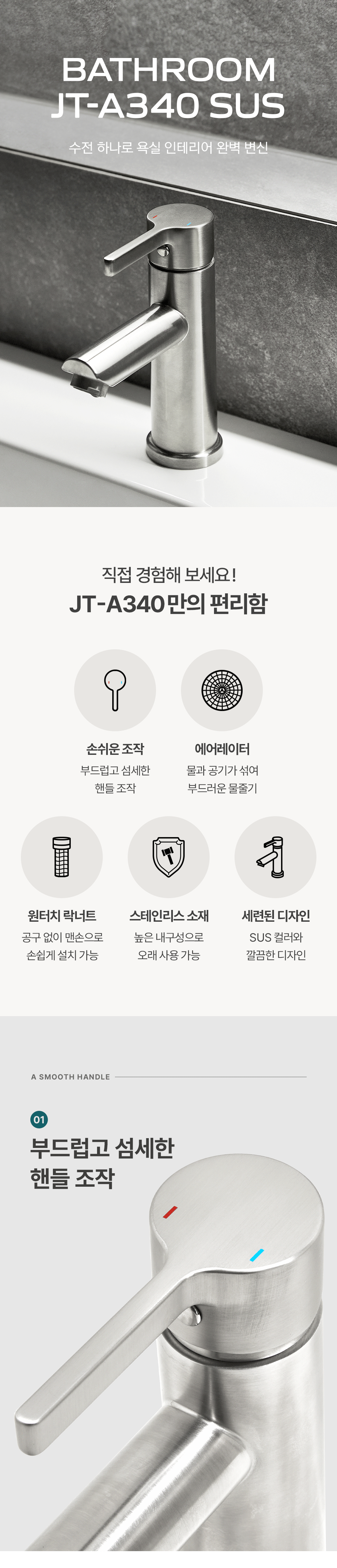 JT-A340 SUS 1홀 세면 수전