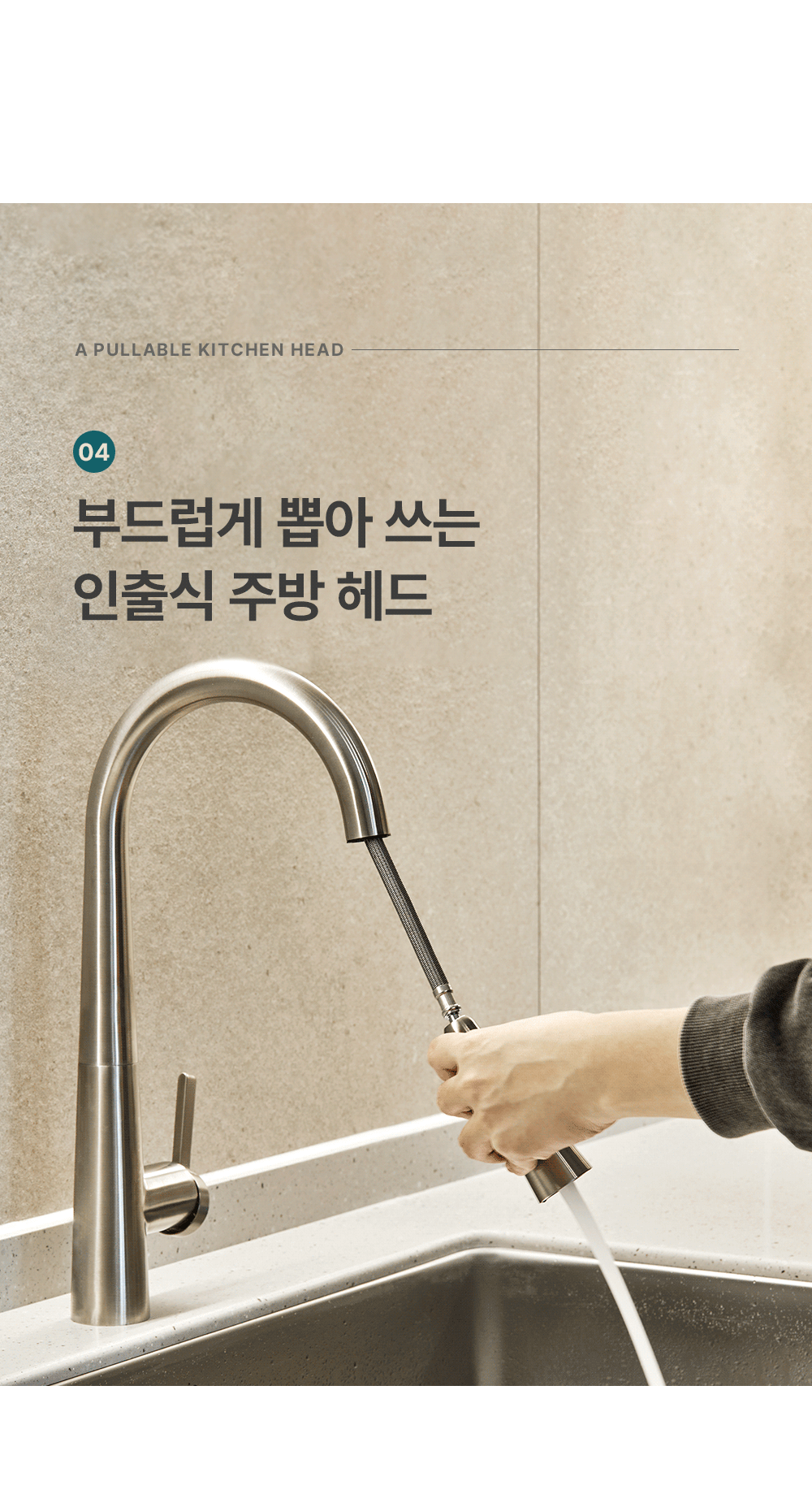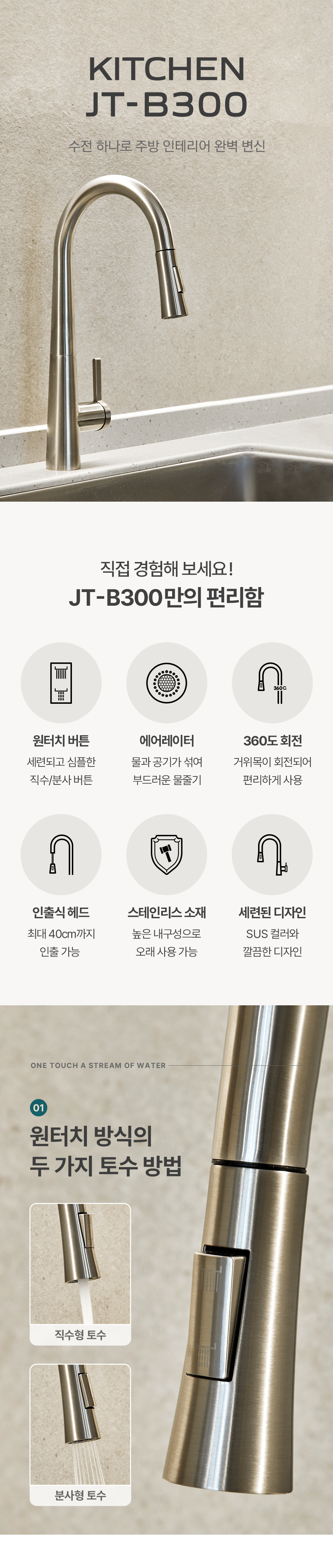 JT-B300 SUS 1H 씽크 수전 / 1홀 주방 스테인리스