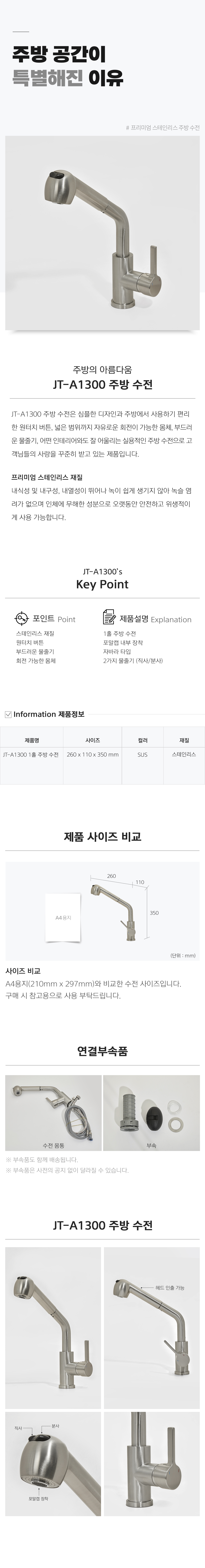 JT-A1300 SUS 1홀 주방 수전 씽크