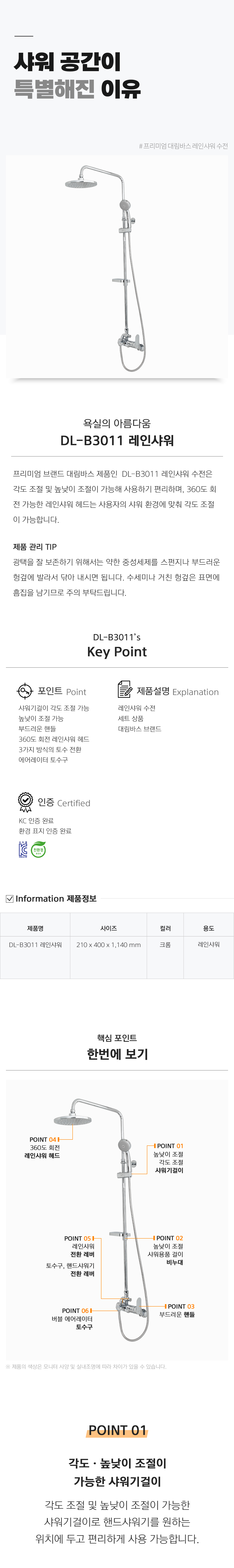 대림바스 DL-B3011 레인샤워 수전 해바라기 (파이프포함)