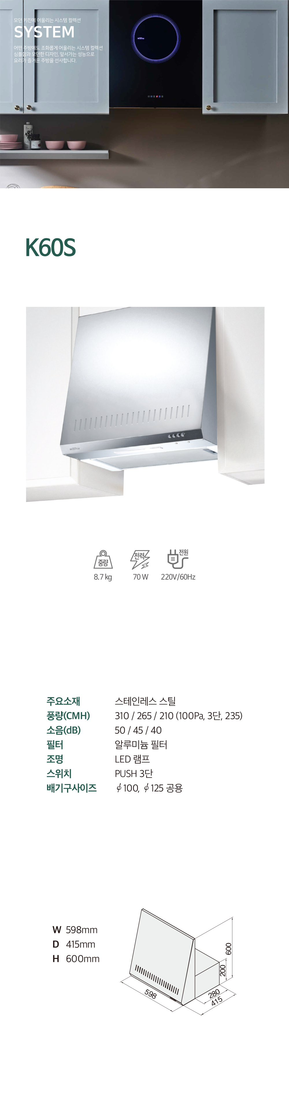 하츠 시스템 통후드(ST) K60S-HZ